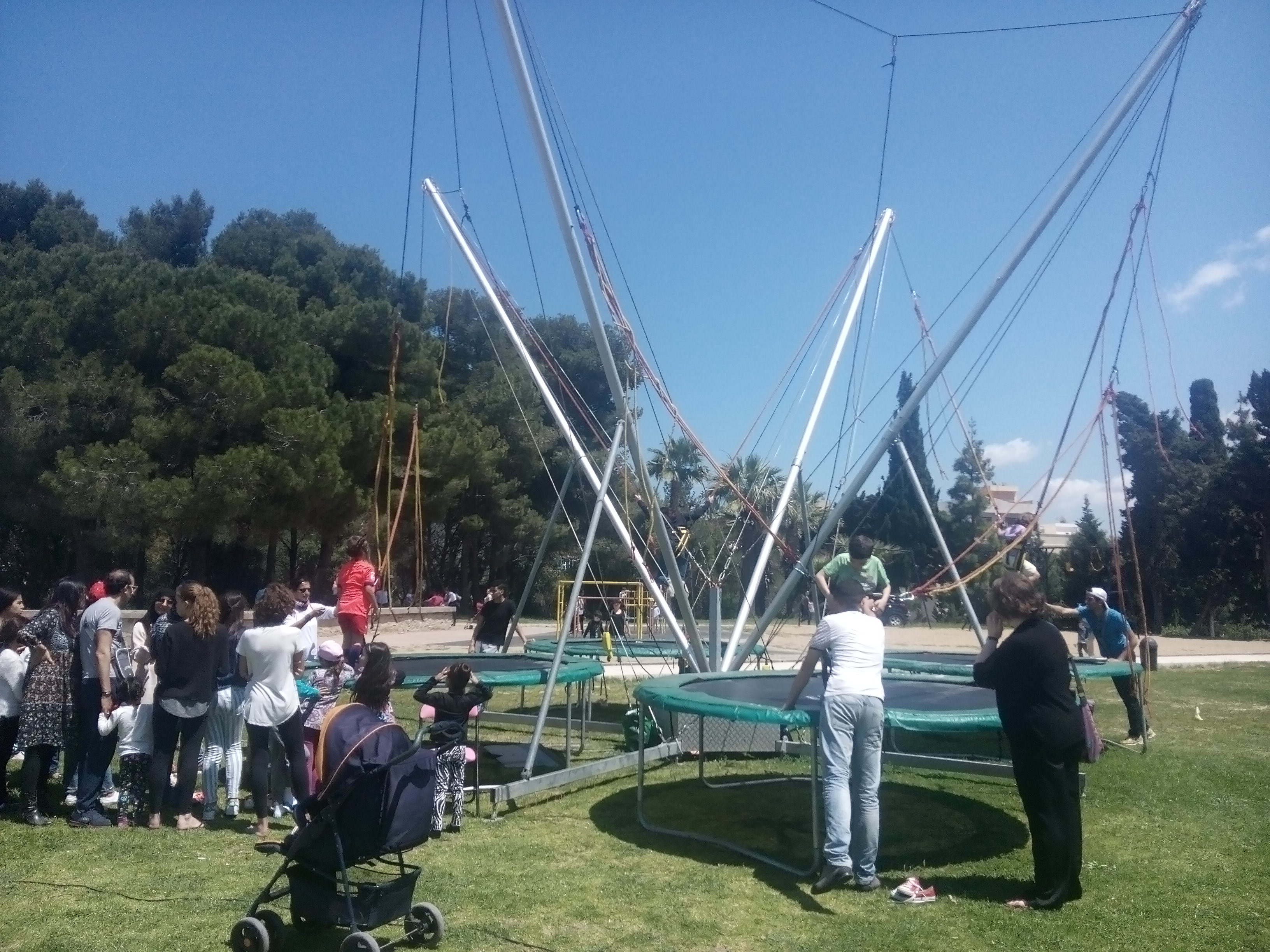 Des trampolines dotés d’élastiques et des mâts de 9 mètres )unique au Maroc(,