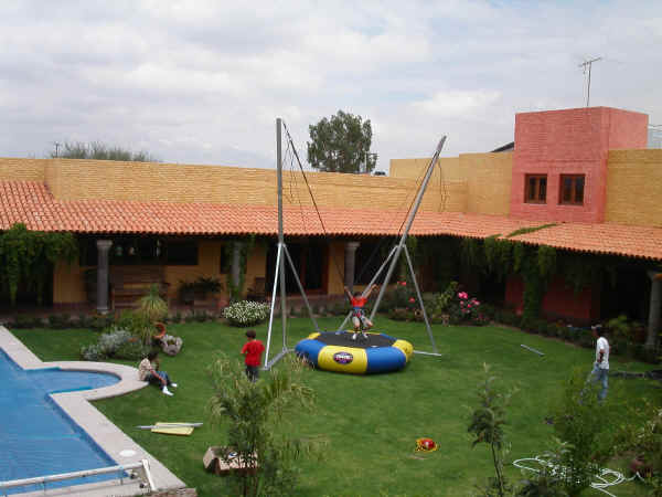 • Avec les élastiques ,les sauts sont amplifiés et permettent de monter de 3 à 10 mè tres,